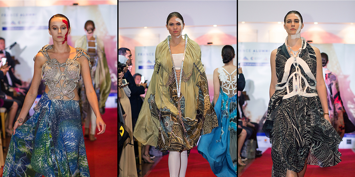 Recently, ESMOD Kuala Lumpur was invited to conduct a fashion show at the French Embassy in conjunction with the launch of the France Alumni E-Platform. The launch was officiated by President of Malaysian French Chamber of Commerce & Industry (MFCCI) Pierre Cheyron and Christophe Penot, French Ambassador to Malaysia, both of whom were wowed by the exclusive collections paraded during the fashion show and showered praises over its highlights.