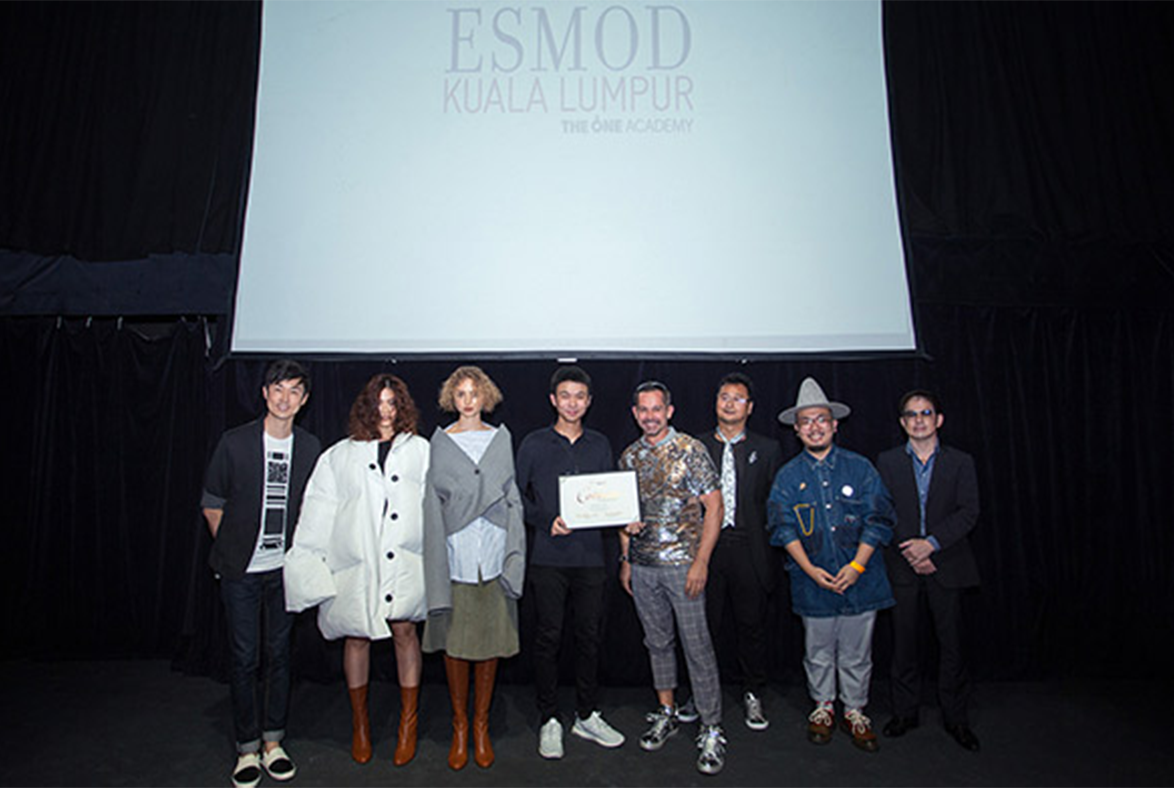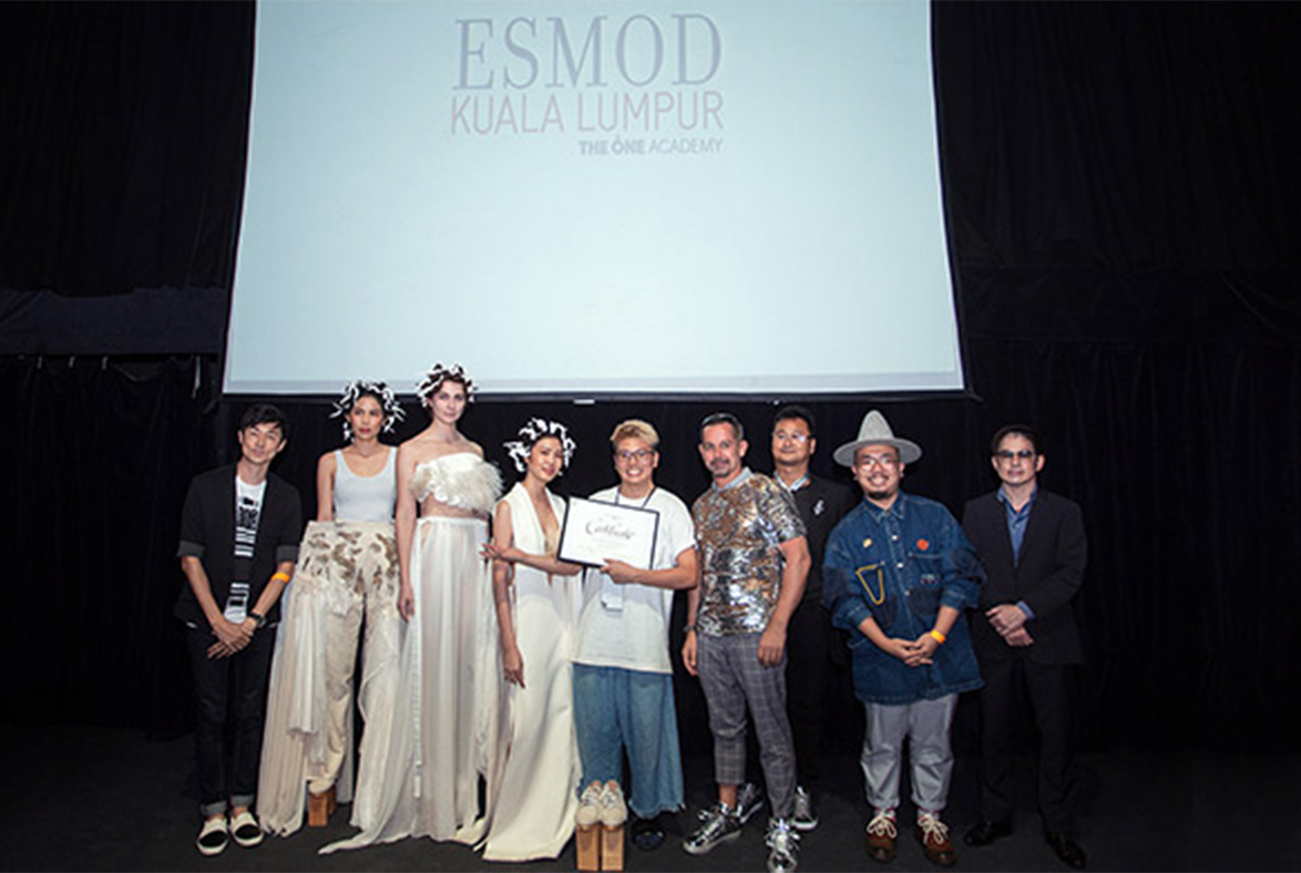 Hoo received ESMOD KL’s prestigious Best Patternmaking Award after the ESMOD KL Fashion Show 2017 from Paul, standing amidst fashion design celebrity Carven Ong and Moto Guo.