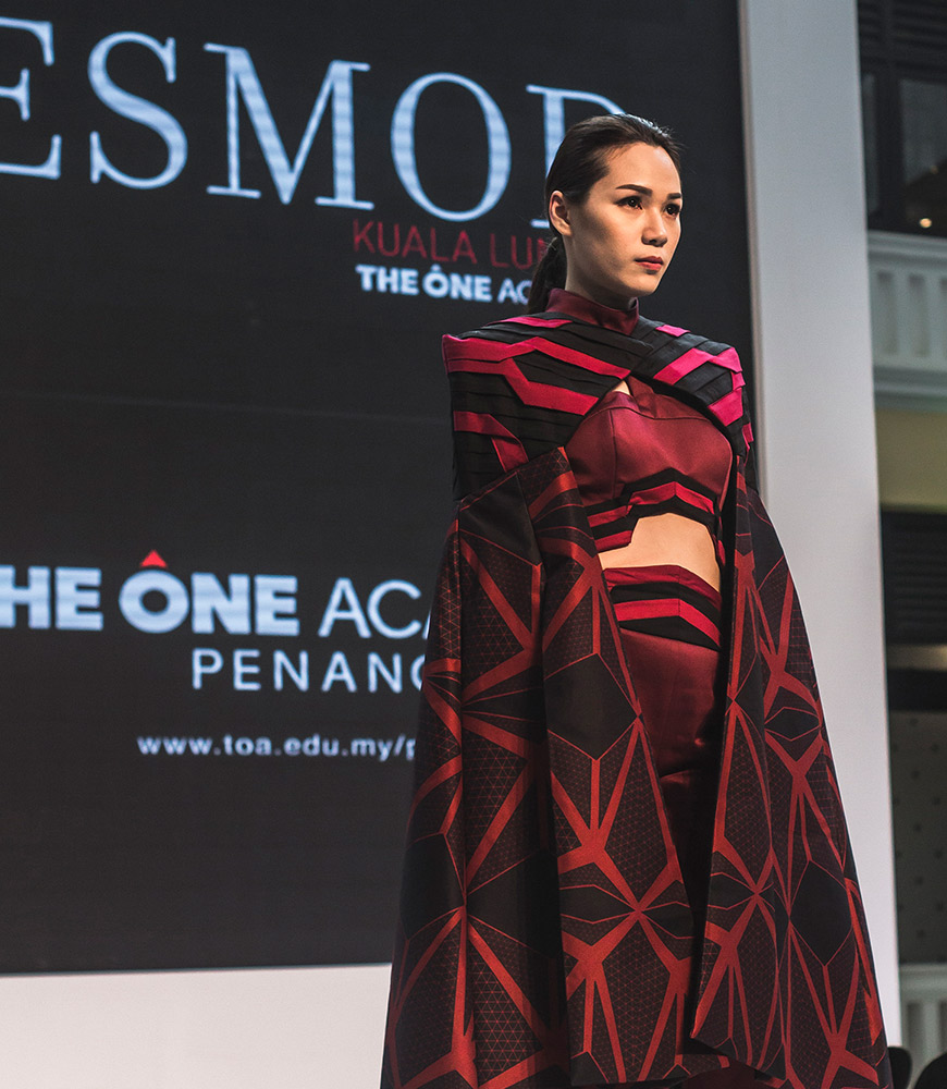 Morph signifies the process of forming, reflecting students’ willingness to embrace change. Morph’s philosophy aims to create meaning in fashion by reflecting their physical and spiritual development throughout the years in ESMOD KL. A look at their collection reveals inspirations from geometry, natural florals, heritage, pop culture and modernity.