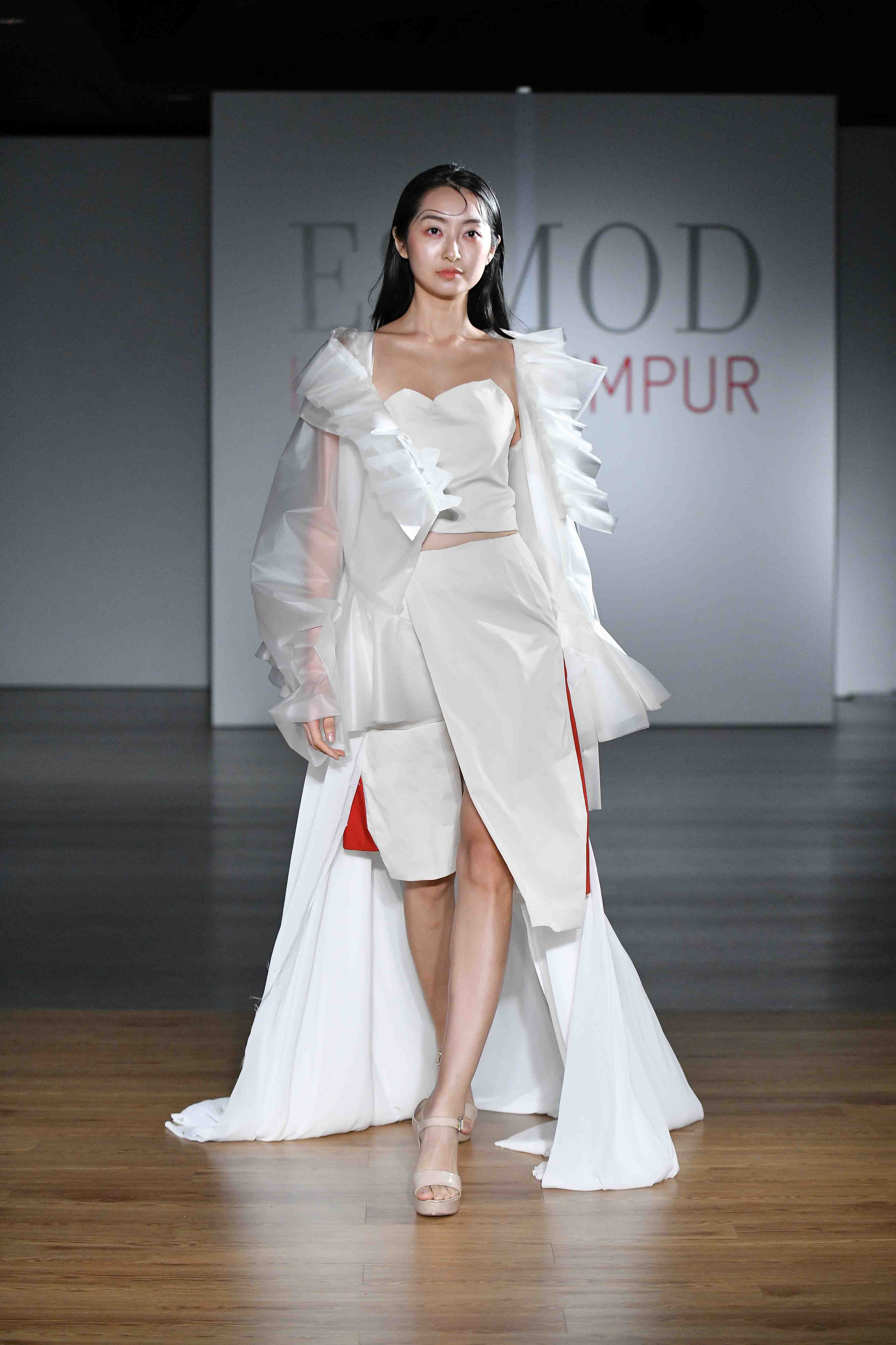 The biggest award of the night, the coveted ‘Golden Needle Award’, was bestowed upon Nadine Hesham. This prestigious award of a pure gold needle made into a necklace is presented by ESMOD International to top students who have shown an exemplary attitude and to honour their achievements throughout their time at ESMOD Kuala Lumpur. Her collection ‘Nine’ was inspired by the definition of femininity, capturing how all women are feminine at heart but the way they choose to express their feminine side is up to each woman even if it doesn’t match up with society’s idea of femininity.