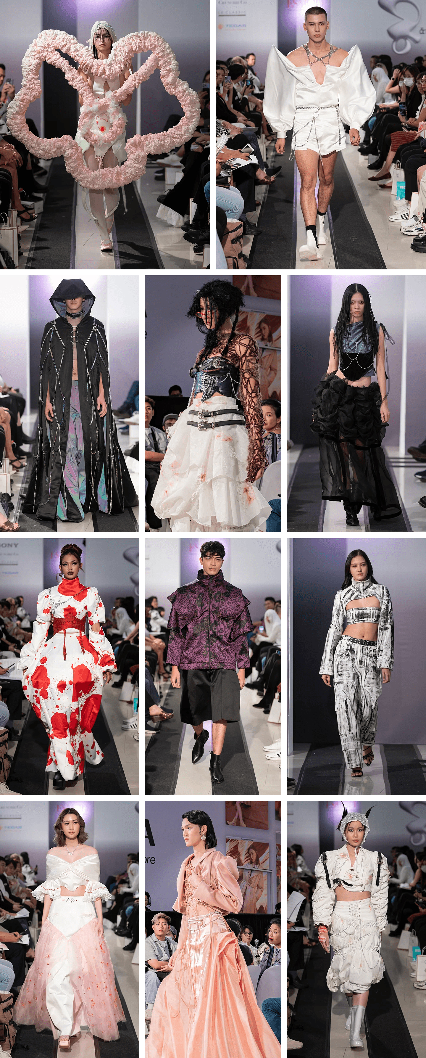 This time around, the stage saw the FD2009 batch of Fashion Design & Pattern Making students exhibit incredible designs surrounding the theme “Atopos” – a Greek phrase composed of ‘topos’ (place) plus the ‘alpha’ prefix. Atopos is a self-confident person who does not seek external validation of their uniqueness. This term best describes all 13 students with their distinctive styles. The show was a celebration of their hard work, creativity and tireless efforts for the past three years.