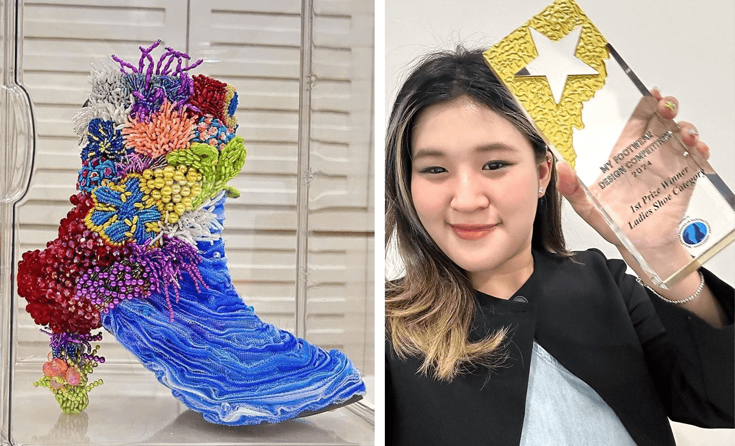 She was also honoured with the opportunity to represent Malaysia on the global stage in the 13th International Footwear Design Competition in Guangzhou, China. Competing against top designers from around the world, she ultimately secured the 2nd Runner-Up position.