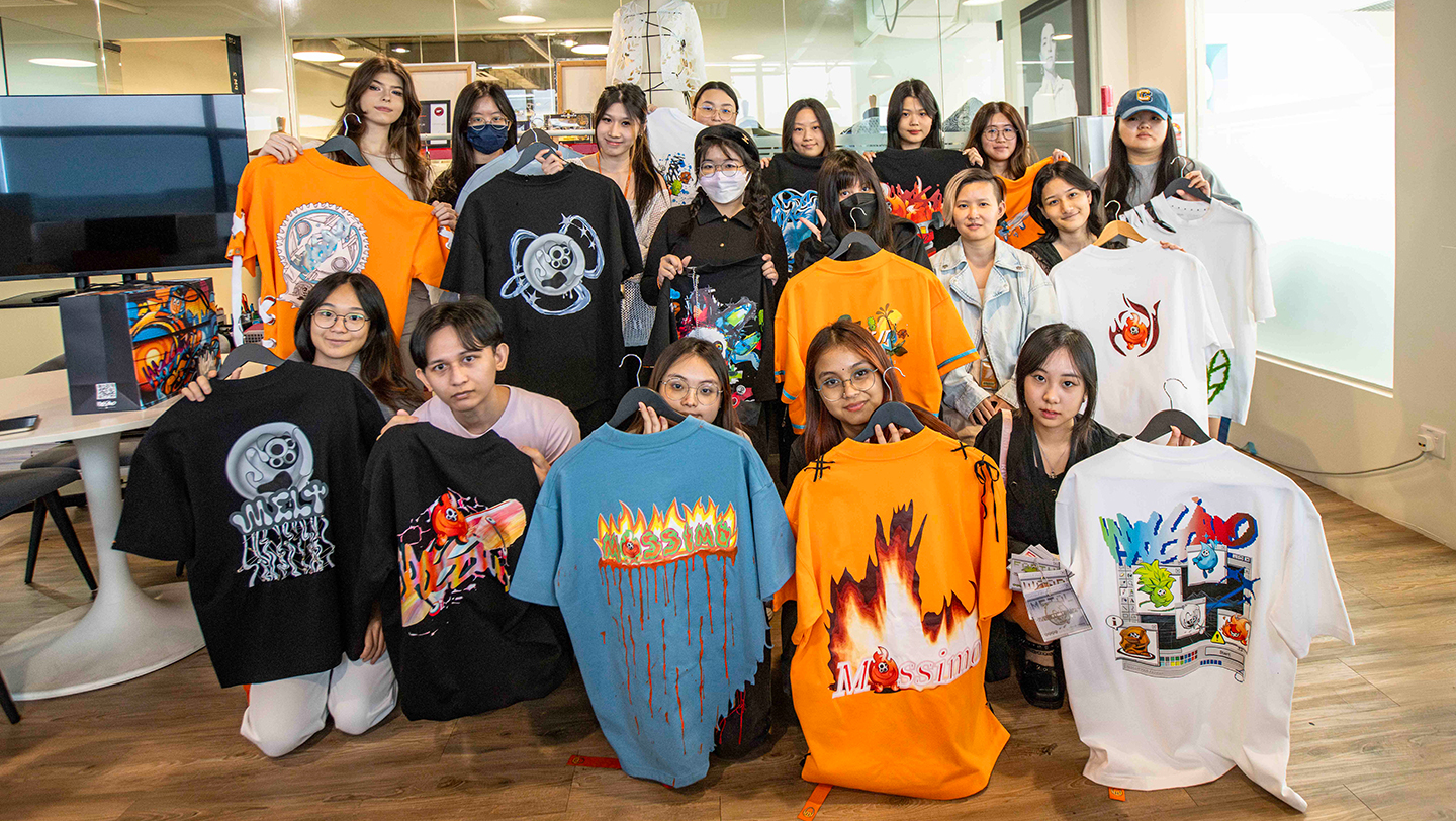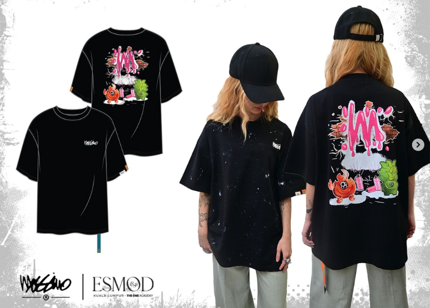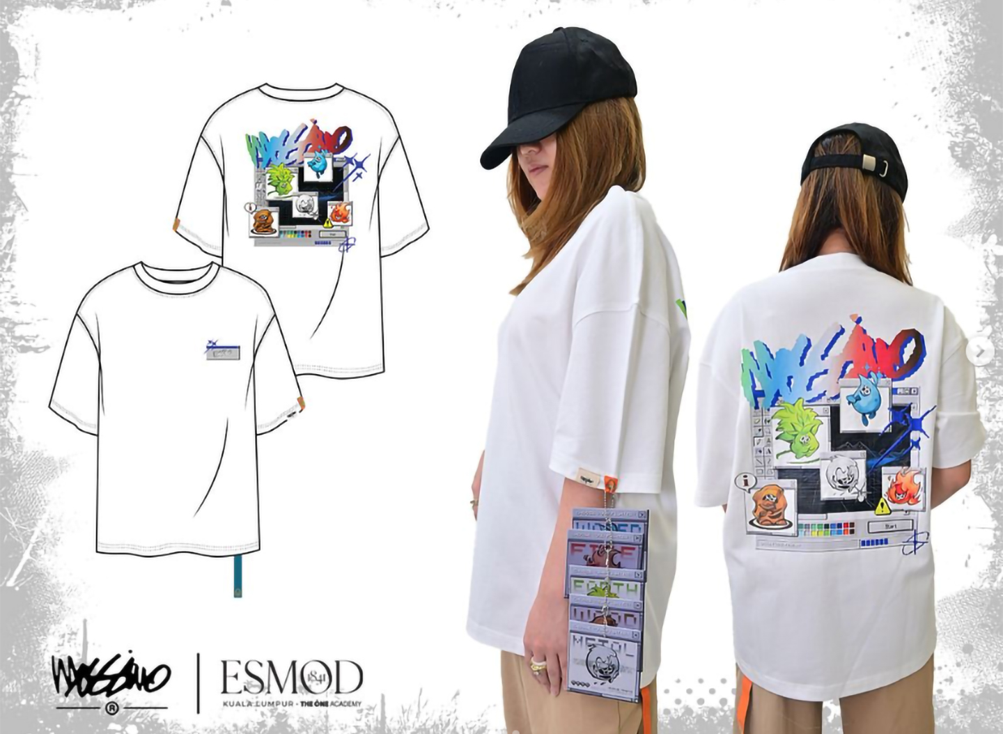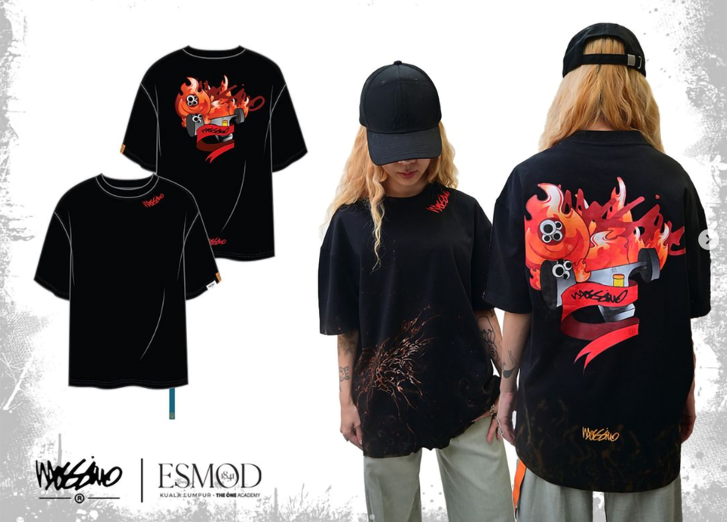 Mossimo partnered with our ESMOD Kuala Lumpur Fashion Design students to bring fresh ideas and creativity into their designs. Over the course of a two-day intensive workshop, 20 students participated in designing graphic tees for the brand. They were given the ultimate freedom to create their own unique prints and craftsmanship on the shirts provided to them.